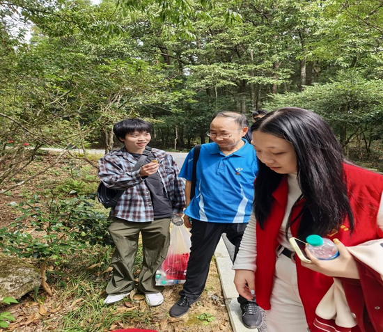 活动期间,李世斌老师与红色班级师生首先来到庐山植物园。大家沿着园区步道有序参观,近距离观察各类珍稀植物,了解植物的生长特性、生态价值及园区的植物保育工作。途中,李世斌老师结合自身生活经历,与学生分享植物在生态保护、日常生活中的重要作用,师生不时驻足交流,探讨植物科学与环境可持续发展的关联,在轻松的氛围中感受自然之美,丰富了植物科学相关知识。
