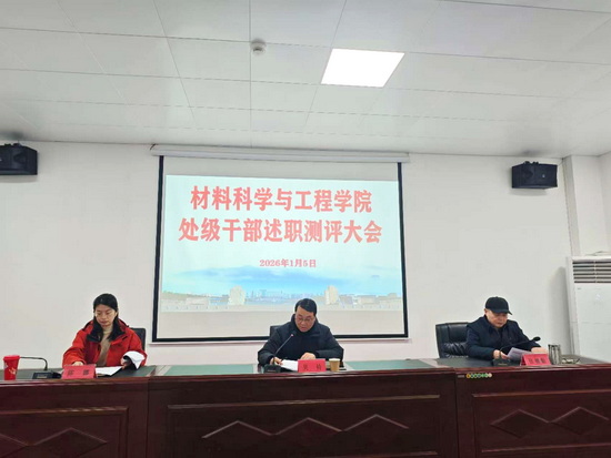 2026年1月6日下午,材料科学与工程学院在材料实验楼306会议室,召开处、科级领导干部年度述职测评大会。校学工处处长吴铃主持会议,学工处综合科科长孟飞、秘书科科长杨鸿雁和学院全体教职工参加了会议。