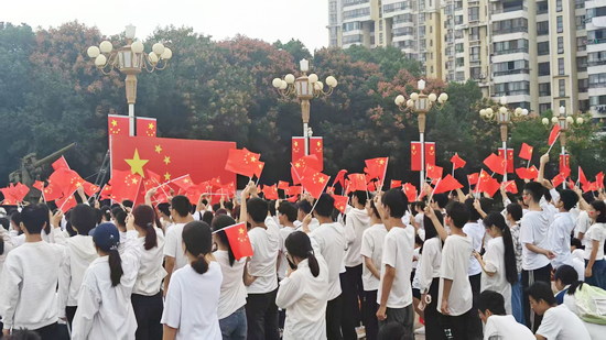 上午8时整,升旗仪式准时启动。伴随着激昂雄壮的《义勇军进行曲》,学校国旗护卫队迈着铿锵有力的步伐,昂首挺胸从队列前方走向国旗台,每一步都饱含对祖国的崇敬与热爱。全场师生目光坚定而专注,共同注视着鲜艳的五星红旗在晨光中缓缓升起、迎风飘扬,现场氛围庄严而肃穆。当国旗升至旗杆顶端的瞬间,西门广场上响起热烈而持久的掌声。这掌声既是对祖国华诞的深情祝福,更是新时代青年学子牢记使命、勇担重任的坚定回应。