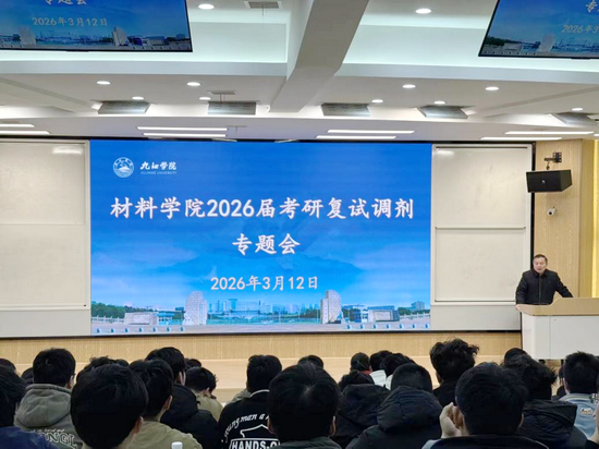 为切实做好2026届考研学生复试调剂指导工作,帮助学子明晰备考方向、破解备考难题,3月12日上午,材料学院在竞知楼阶梯教室二召开2026届考研学生复试调剂专题会。学院领导、毕业班班主任、各教研室负责人,副高以上职称及博士教师,与2026届全体考研学生共同参会。会议由学院党委副书记熊焘主持。